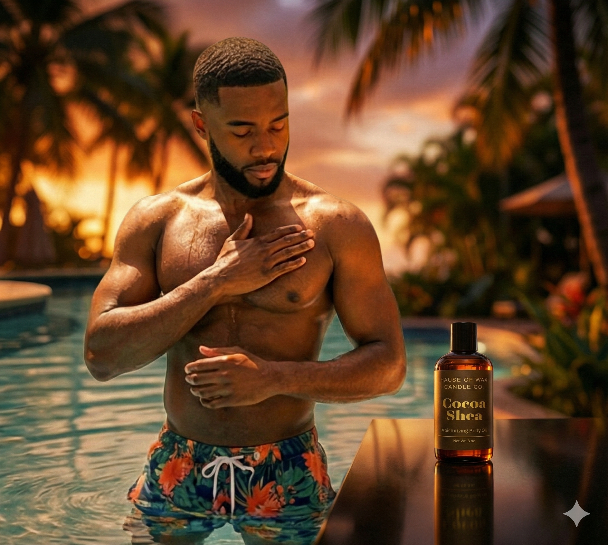 Your first line of defense against dry skin. Cocoa Shea takes the classic comfort of cocoa butter and transforms it into a silky, fast-absorbing oil. Enhanced with hints of coconut and warm spice, it seals in hydration and improves skin texture over time. Essential for keeping your skin looking healthy and ash-free year-round.Scent Notes