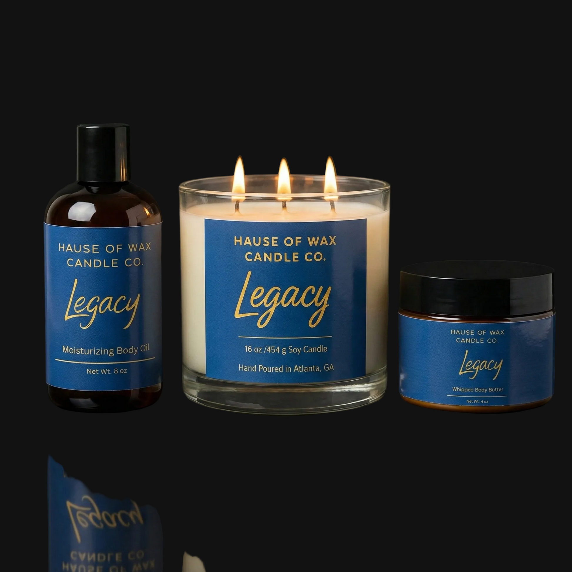 The Legacy Bundle Set brings that clean, confident Legacy vibe to every part of his routine—candle, body butter, and body oil working together to keep his space and his skin on point. Fresh ozone, sea salt, and dark musk move with him from the room to the skin, leaving behind a calm, focused, grown-man energy everywhere he goes. This is for the man who’s not just living day to day—he’s building something that lasts.Scent Notes